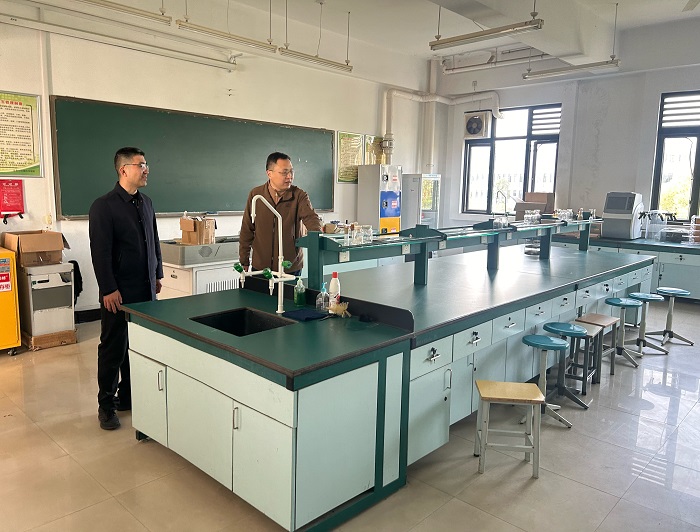 此次检查涵盖危化品存储、设备使用规范、用电安全管理、消防设施状态等12项核心指标。检查小组采取“台账核查+现场问询+设备抽检”的方式,对实验室管理台账、电气安全、危化品管理等方面展开细致排查。在检查过程中,万志兵副书记指出,要搭建人防与技防相结合的双重保障体系,特别是假期仍有实验任务的实验室,务必落实“三查三报”制度。万顺利副经理则着重强调,必须严格落实定人、定机、定岗、定责、定处置预案的“五定”管理制度。期间,检查小组随机走访了三个正在开展实验的实验室,同步推进两项重点工作:一方面,在现场开展标准化操作微培训,即时强化师生的实验规范意识;另一方面,核验试剂柜双人双锁制度的执行情况,保障实验室试剂管理规范有序。