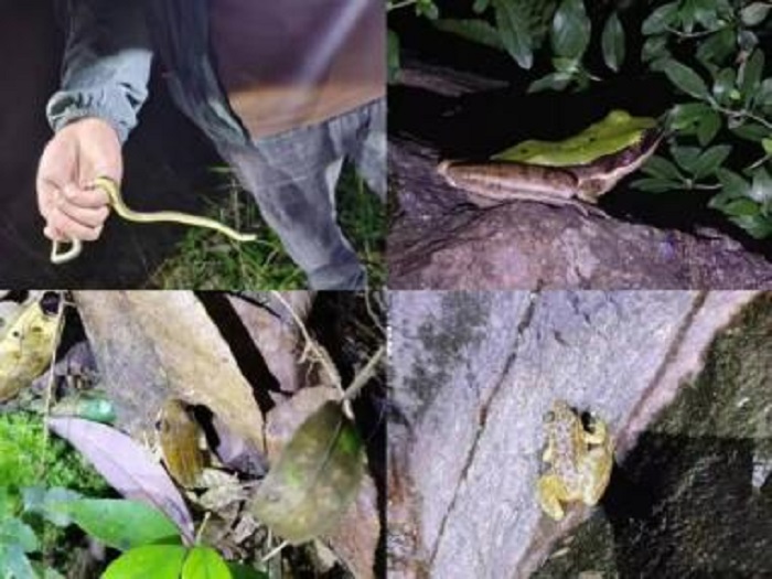 另一板块是由杨典成老师带领员工走进大自然中,开展森林群落结构与物种多样性分析和溪流生态系统两栖爬行动物调查,在植被调查现场,老师示范样方的操作要点,从样方的科学划定到乔木胸径测量、物种统计,每一个步骤都严谨细致。面对不同坡向、坡度的样地,引导员工思考生境异质性对群落结构的影响,让员工们明白,生物科学研究不仅要关注物种本身,更要探究环境与生物的互动关系。