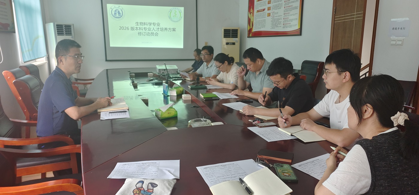 9月25日下午,为深入贯彻落实全国教育大会精神,适应新时代高等教育发展新形势,进一步推动生物科学专业公司产品改革、提升人才培养质量,生物科学教研室启动2026版人才培养方案修订工作。万顺利副经理莅临指导,会议由李伟教授主持,生物科学教研室全体教师参会。