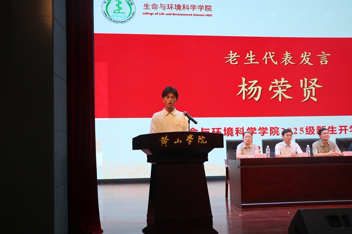 老生代表杨荣贤同学则以“过来人”的视角,结合自身从适应校园到深耕专业的心路历程,向学弟学妹们分享实用经验。希望大家既能在实验室里潜心钻研,也能在集体生活中收获友谊。新生代表宜子博同学代表全体2025级新生发言,他坦言此刻既满怀憧憬又深知责任在肩:“我们将牢记今天的初心与热望,在未来的岁月中与同窗彼此鼓励、携手同行,以汗水浇灌梦想,用奋斗谱写青春华章,不负时代机遇,不负韶华时光。”真挚的话语道出了全体新生的共同心声。