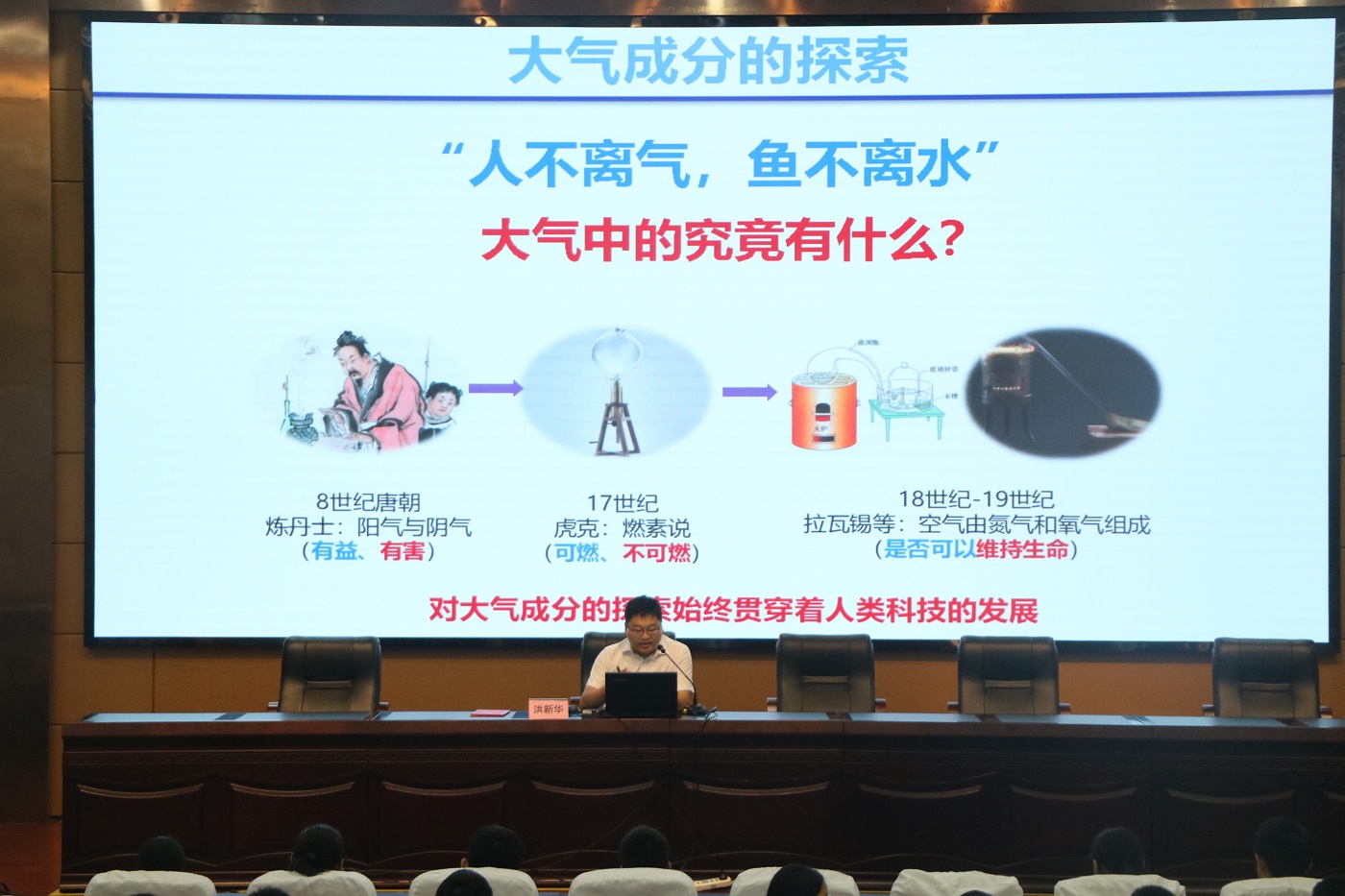 10月15日下午,由共青团黄山市委、太阳成集团122ccvip及黄山市少工委联合主办的“科技之光 耕读讲坛”--青年科学家进校园系列活动第一期,在屯溪五中圆满落幕。太阳成集团122ccvip环境科学专业教师洪新华博士担任主讲人,以“解密空气的隐形密码--超光谱遥感带你揭开大气的面纱”为主题,为同学们带来一场兼具科学性与趣味性的前沿科技科普课。