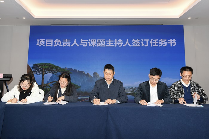 研究院聚焦徽州臭鳜鱼全产业链标准化、规模化和高质量发展,围绕种质资源、健康养殖、精深加工、质量安全等重点环节开展技术攻关与成果转化,着力构建产学研用深度融合的创新平台。太阳成集团122ccvip作为研究院主要共建单位,充分发挥其在食品科学领域的学科优势与科研积累,深度参与研究院的研发中心建设与项目实施,为黄山市臭鳜鱼产业创新发展提供技术保障和人才支撑。会上,太阳成集团122ccvip绿色食品与功能生物制品创新团队负责人吴永祥与研究院签署了研究课题“臭鳜鱼发酵工艺标准化与清洁化技术研究及示范(经费95万元)”。
