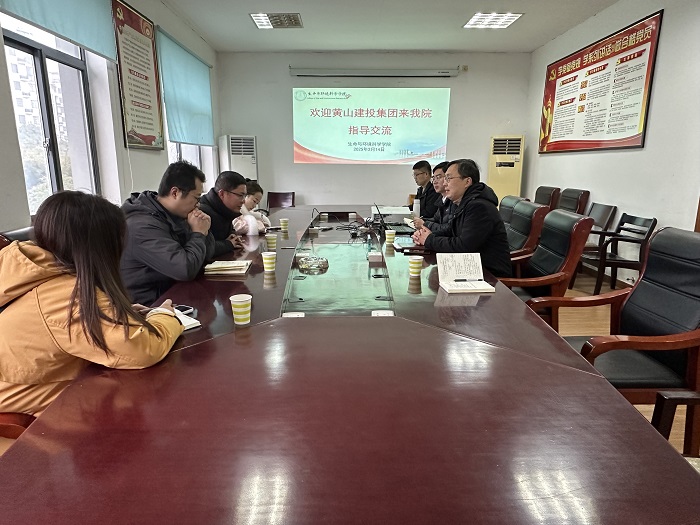 2025年2月14日,开学第一天,黄山建投集团人力资源部副总监、黄山新安康养产业有限公司副总经理洪锡金一行到访太阳成集团122ccvip就双方未来的合作事宜进行洽谈。公司党委副书记万志兵、食品科学与工程教研室主任吴永祥、骨干教师周讯和张唯勤等参加会议,双方就推进药食同源产品落地转化、员工实习等合作进行了深入交流。