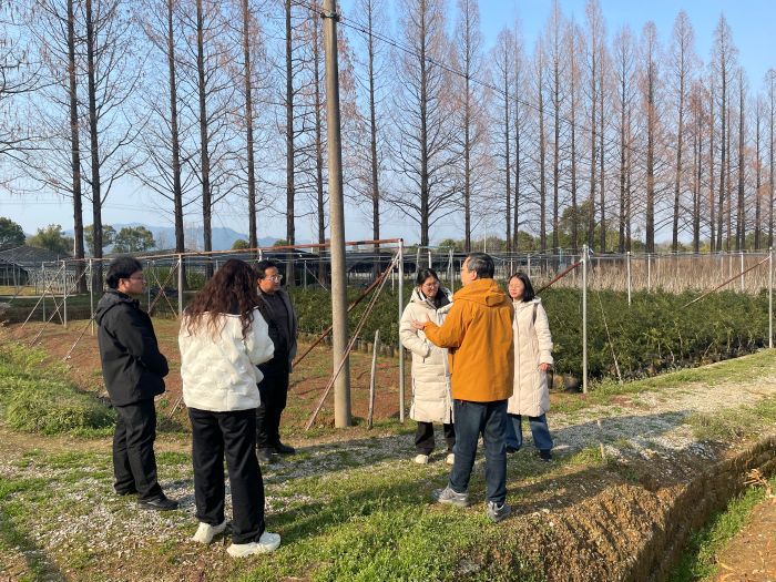 万志兵教授一行详细考察了基地的种苗培育区、嫁接试验区及资源保存圃,对现有设施布局、管理模式及技术应用成效给予高度评价。双方还就树上石斛种植、观赏树种嫁接、种质资源库建设等展开探讨,初步达成与团队共建实验基地、联合申报相关科技项目等的意向。