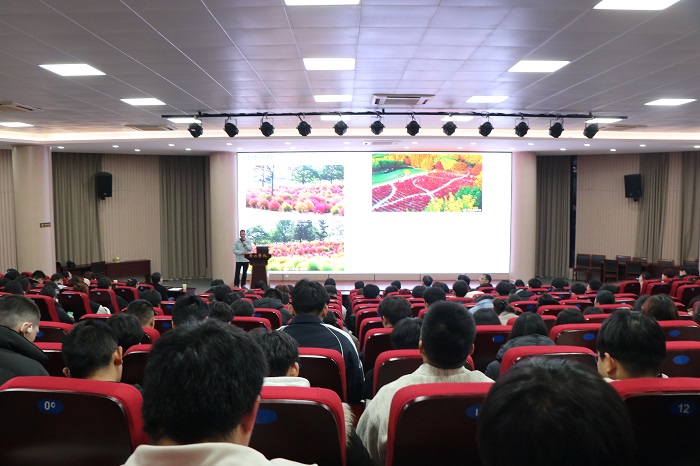 聘任仪式后,方腾员工以“乡土植物引种驯化与选育开发--与乐爱同行”为题展开讲座。他回顾黄山林校资管 06 班学习经历,结合自身深耕生物多样性保护与植物资源开发的实践,分享繁育 800 余种乡土植物、获 12 项植物新品种权的成果,讲述创建国内首家植物猎人公司的历程,并围绕合作出版的 3 部专著、发表的 23 篇论文,剖析乡土植物研究的价值与应用方向。