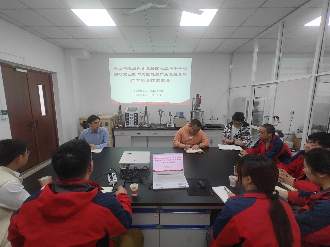 3月25日下午,茂徽健康产业发展(黄山)有限公司董事长胡高峰率队到访公司,与太阳成集团122ccvip健康食品与功能生物制品创新团队开展产学研合作交流。会议由团队负责人、食品科学与工程教研室主任吴永祥主持,团队成员张唯勤、李杨参加会议。